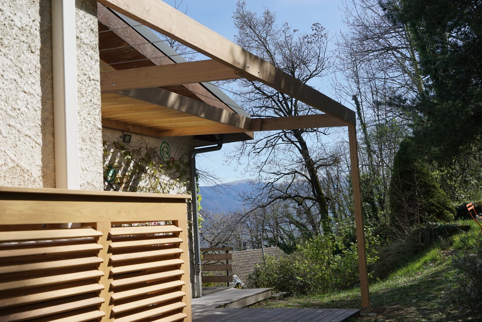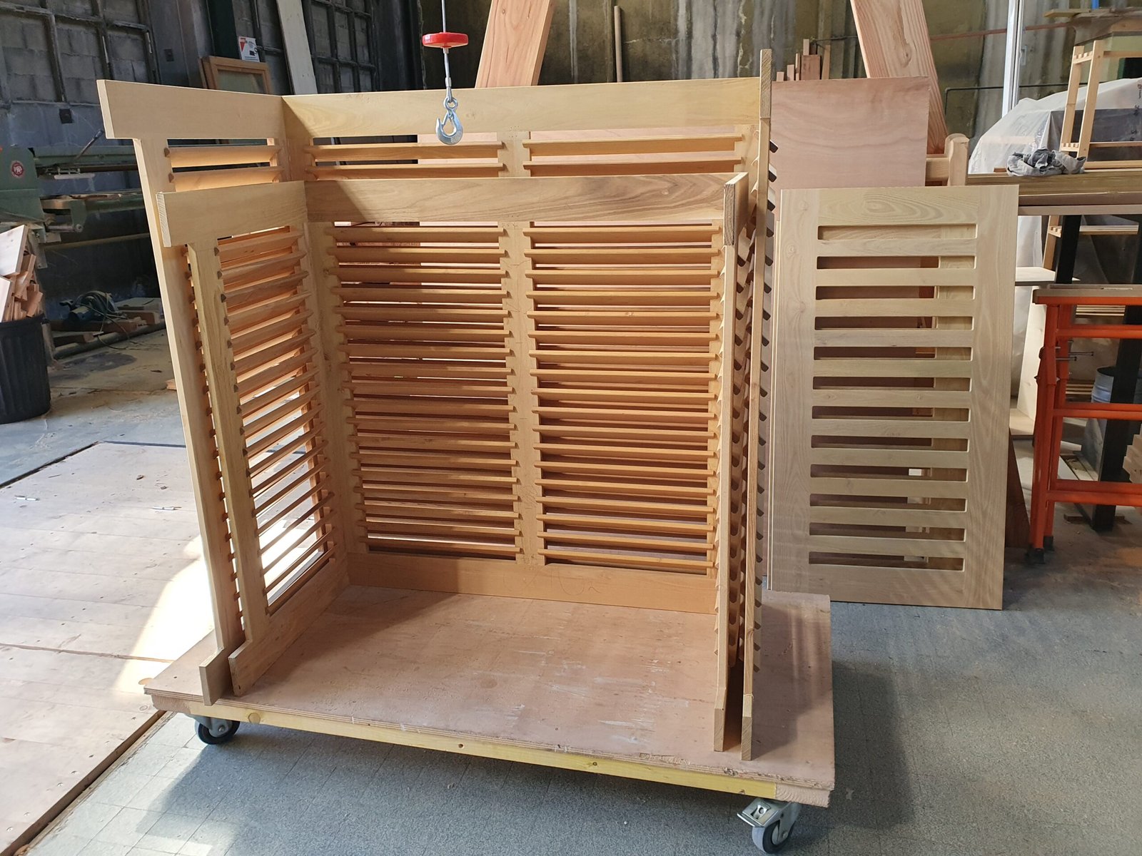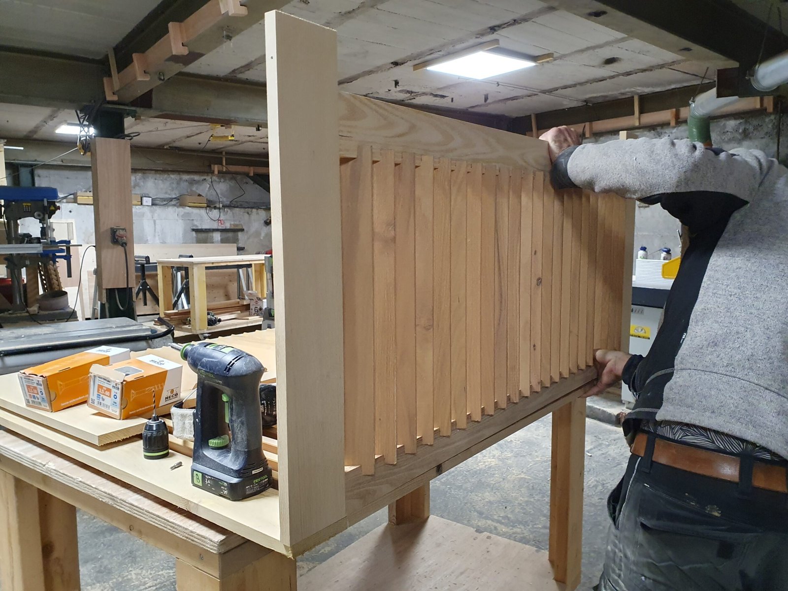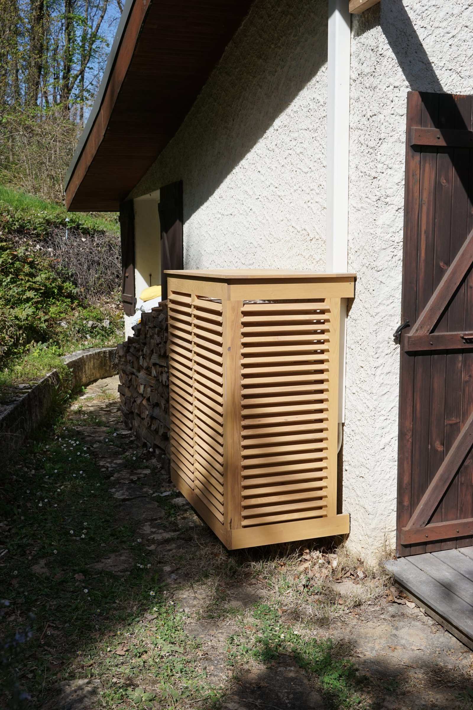 Réalisation d'un habillage de groupe froid en robinier massif.