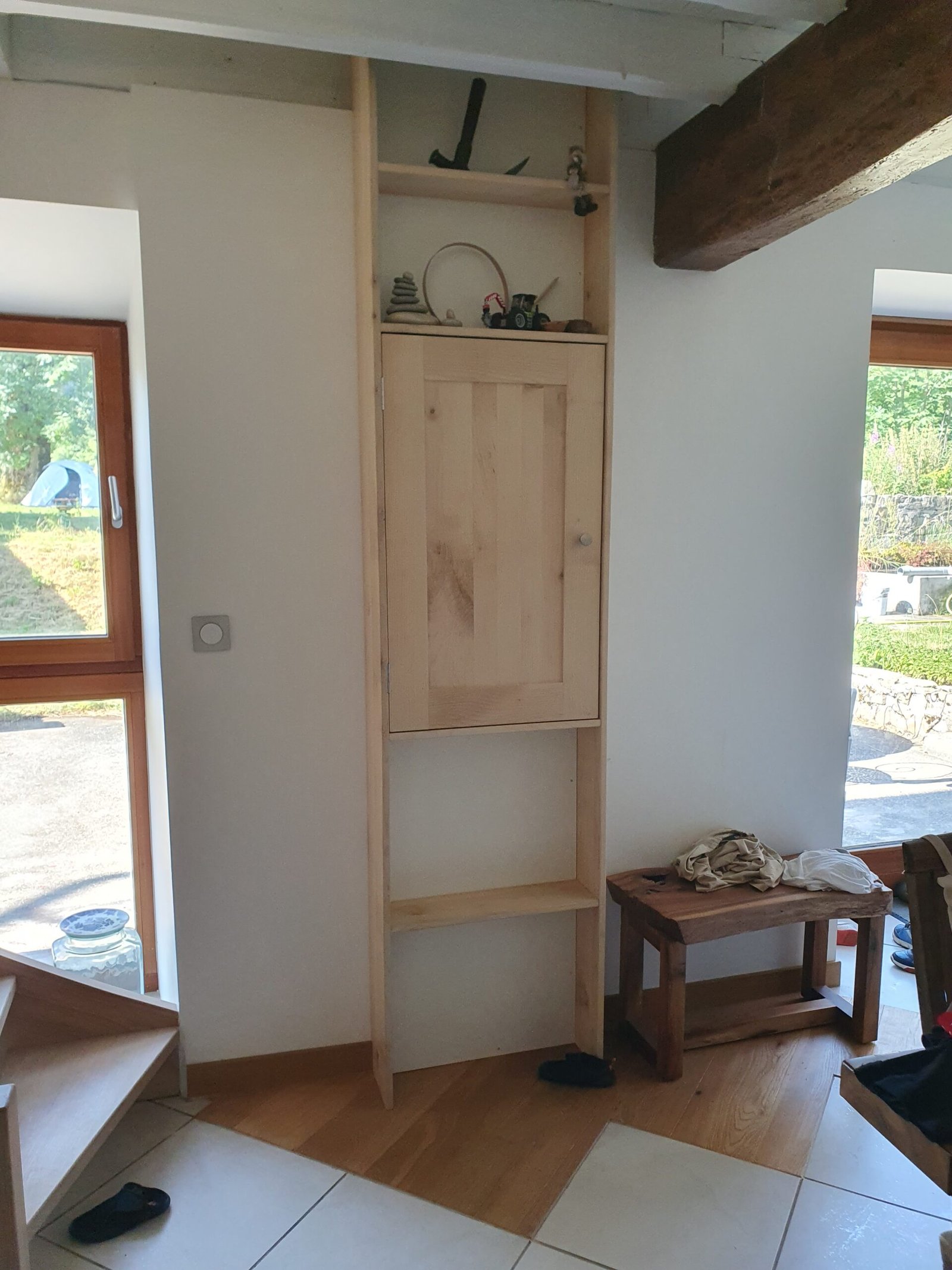 Fabrication sur mesure de cache compteur ou placard d'entrée. Mélèze, merisier, chêne....