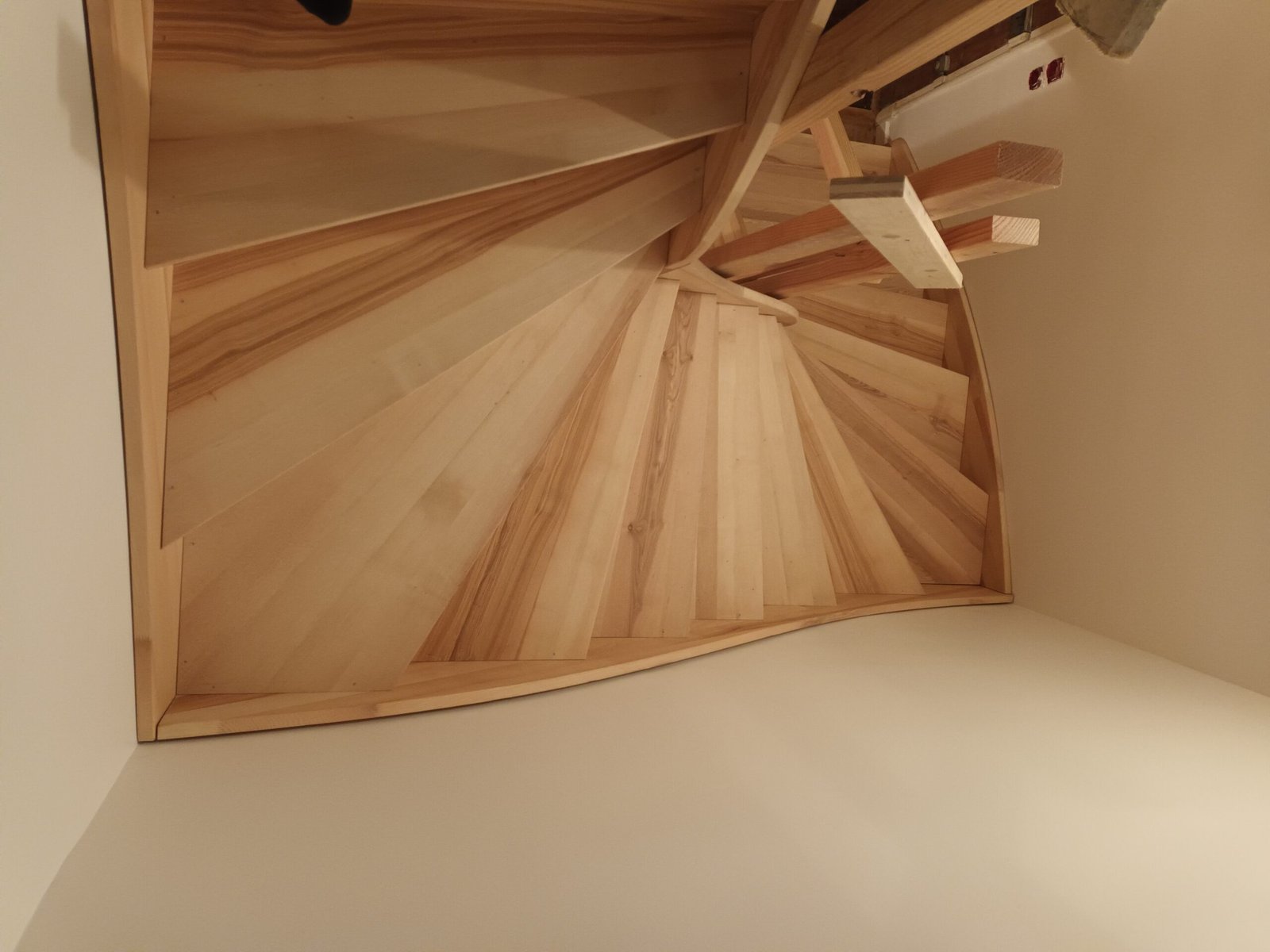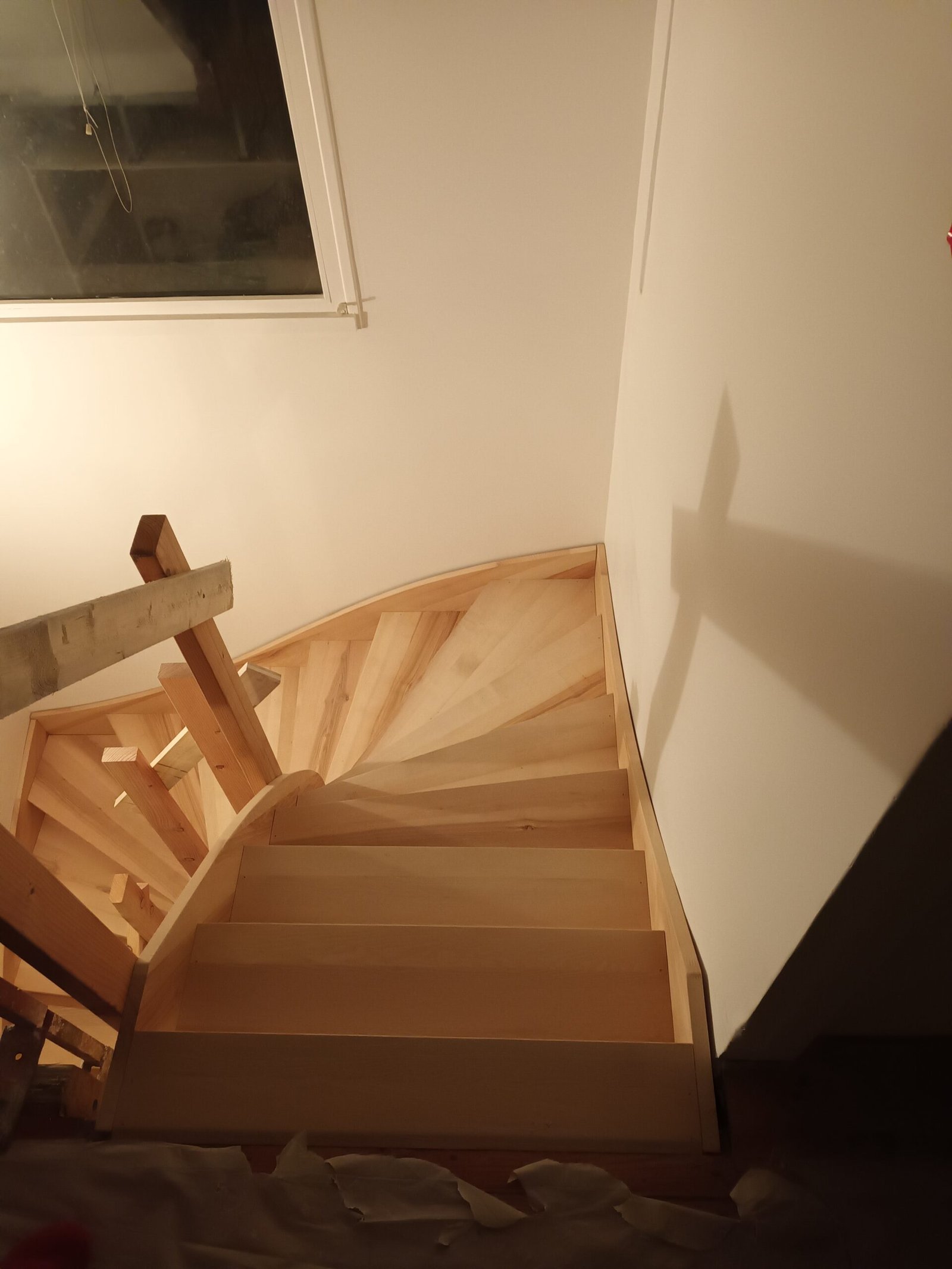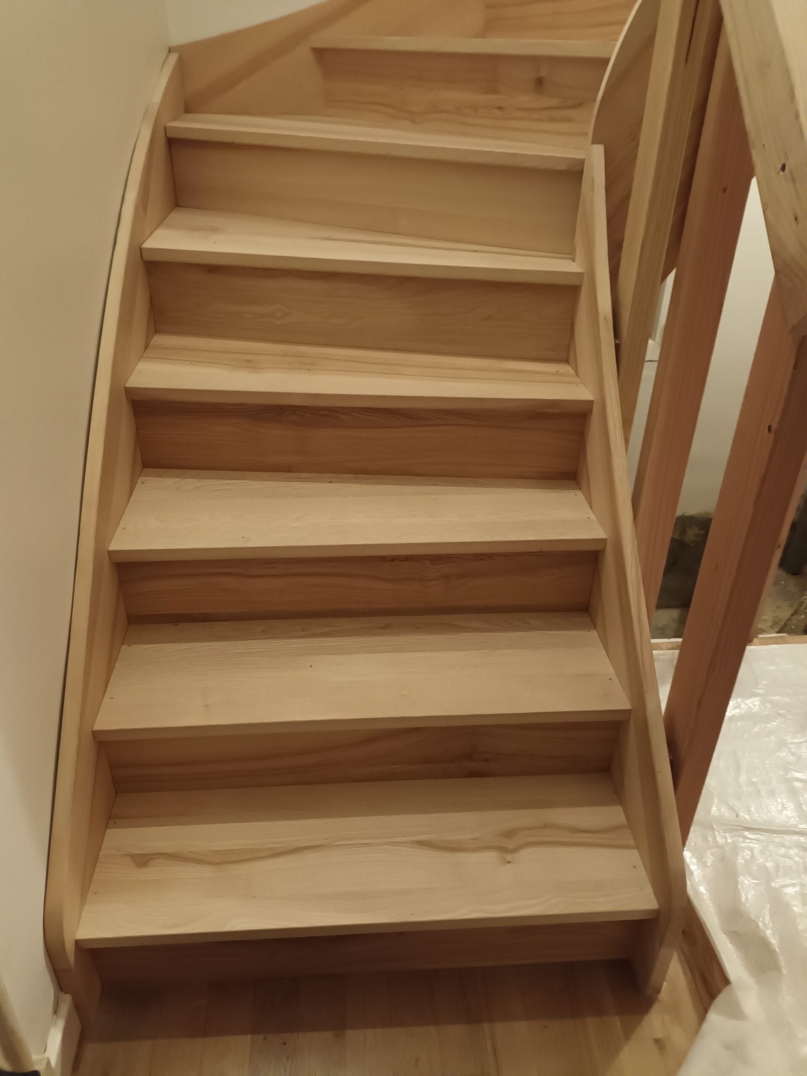 Fabrication d'un escalier 3/4 tournant avec contremarche et stylobate.