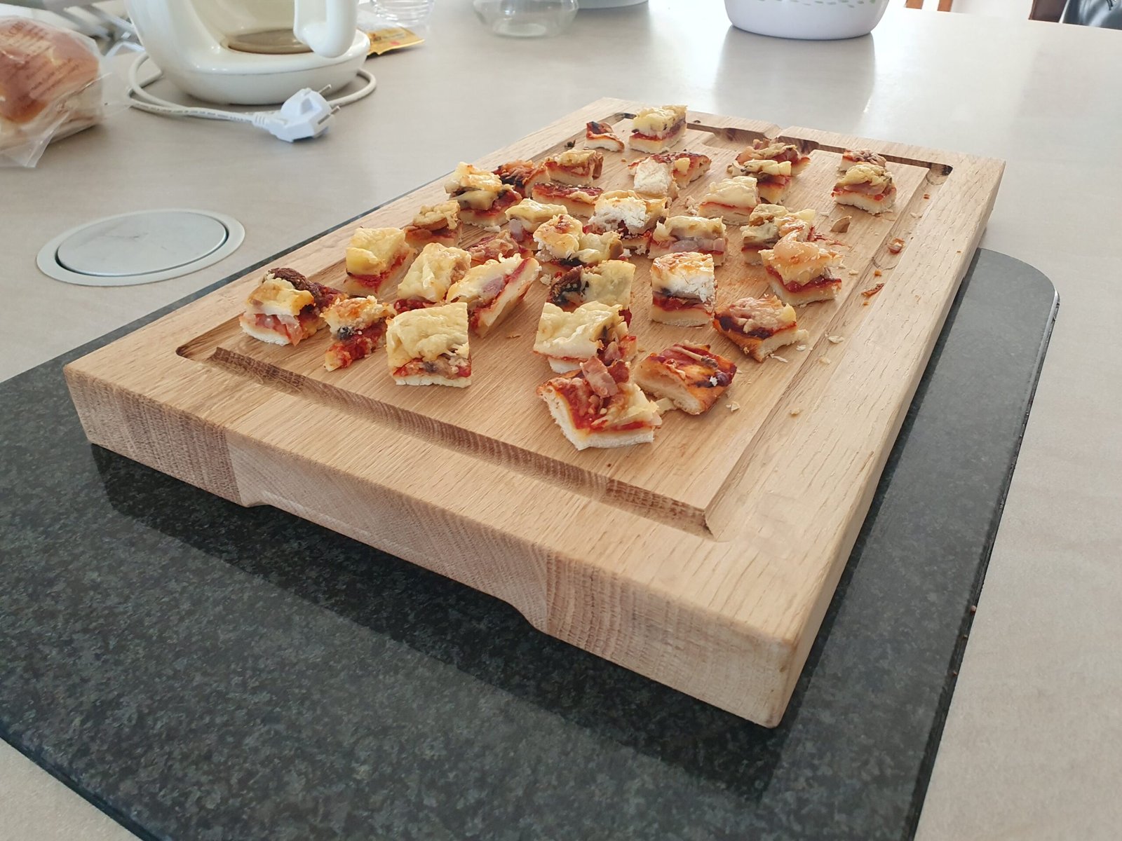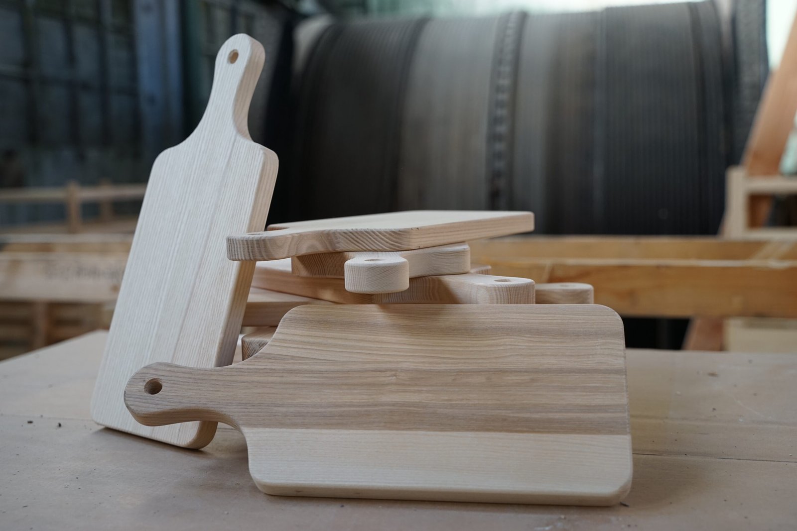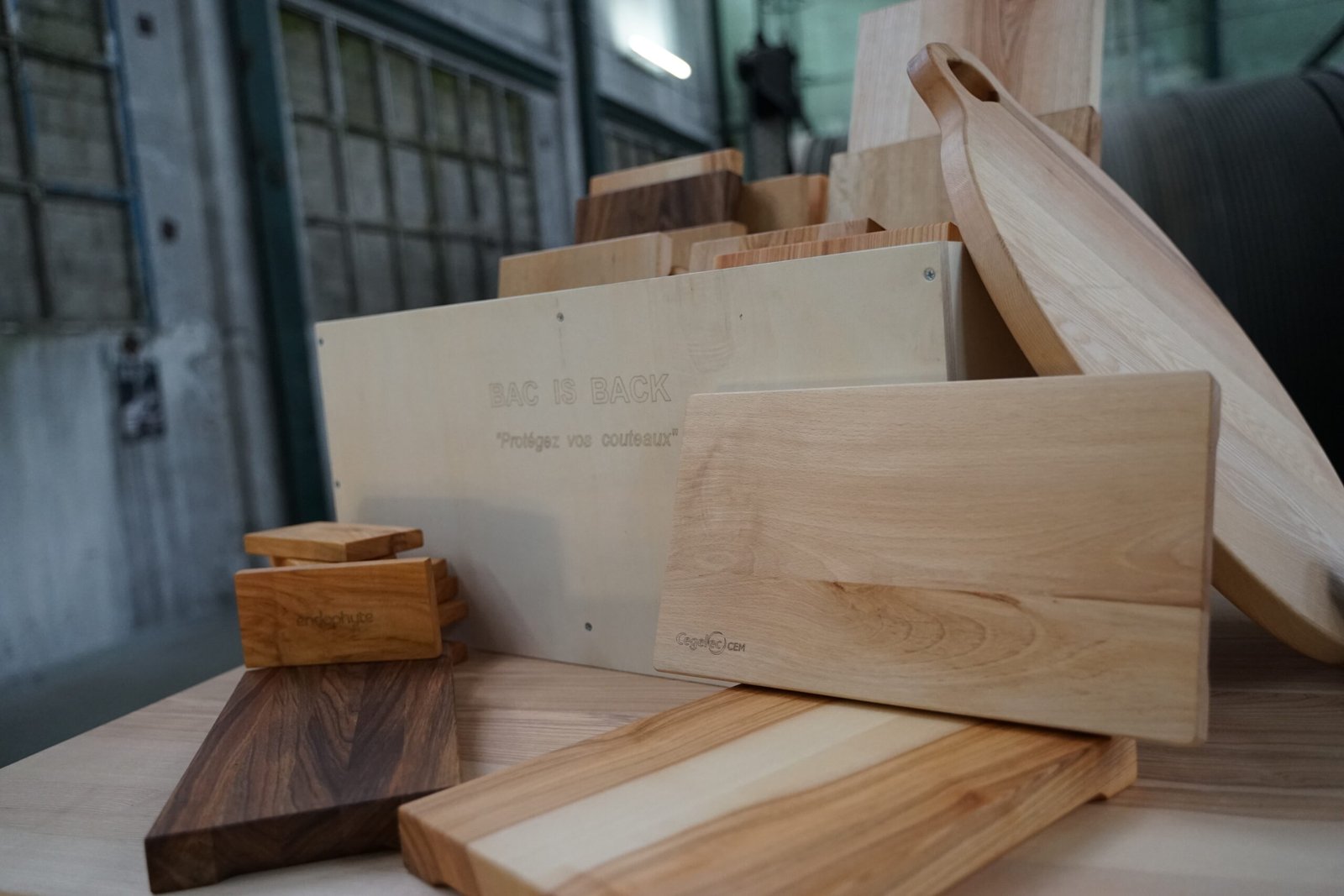 Confection de planches de services en bois massif de différentes tailles avec et sans rigole à jus.