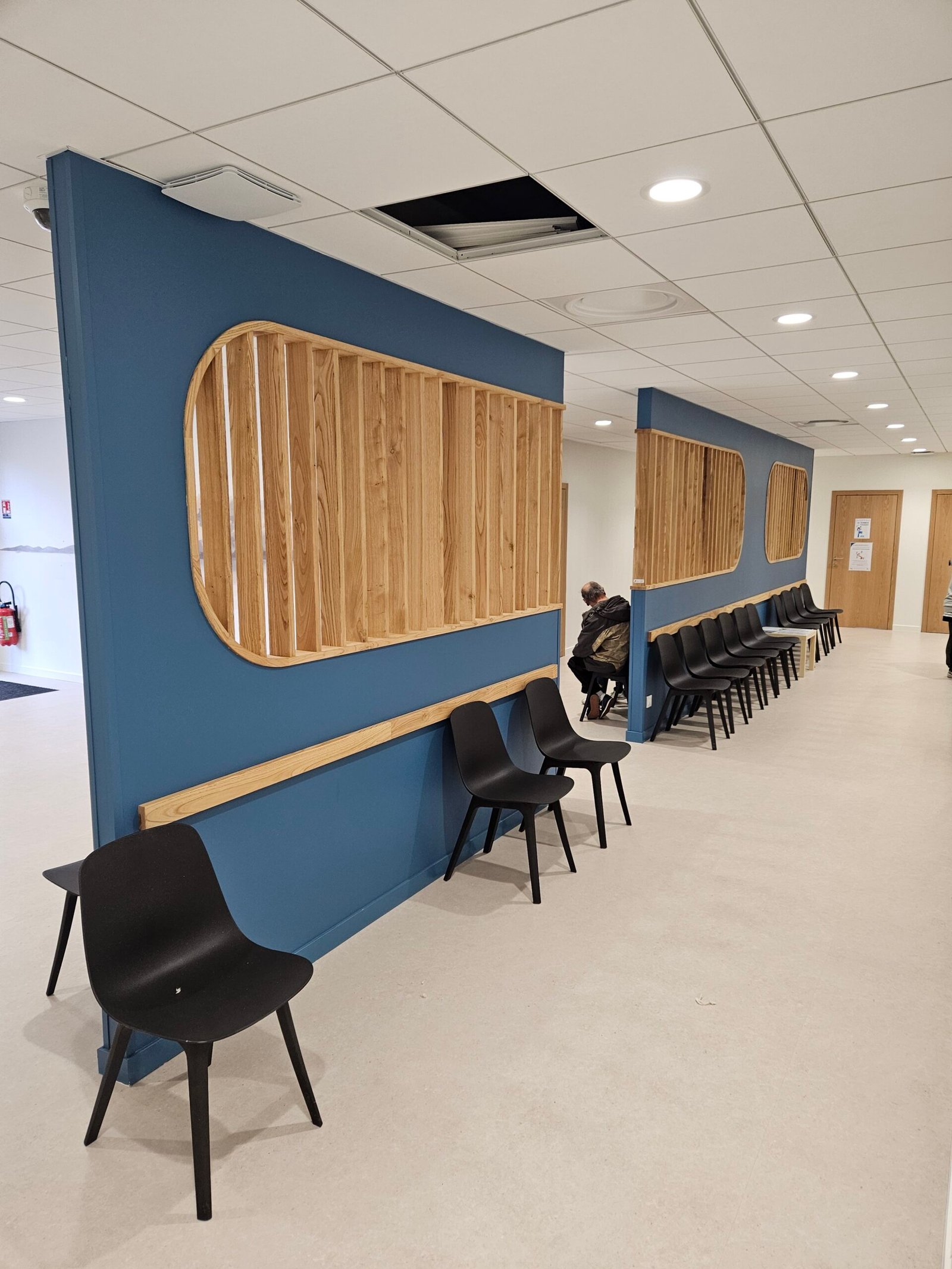 Réalisation des claustras de la salle d'attente pour la maison de santé de la mure. Réalisation en châtaigner