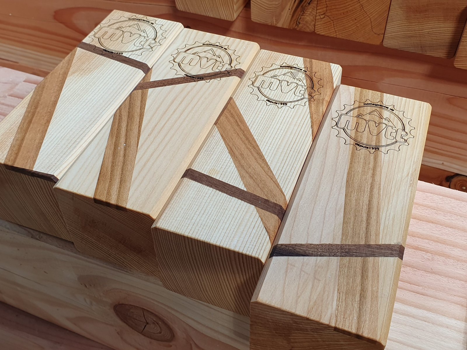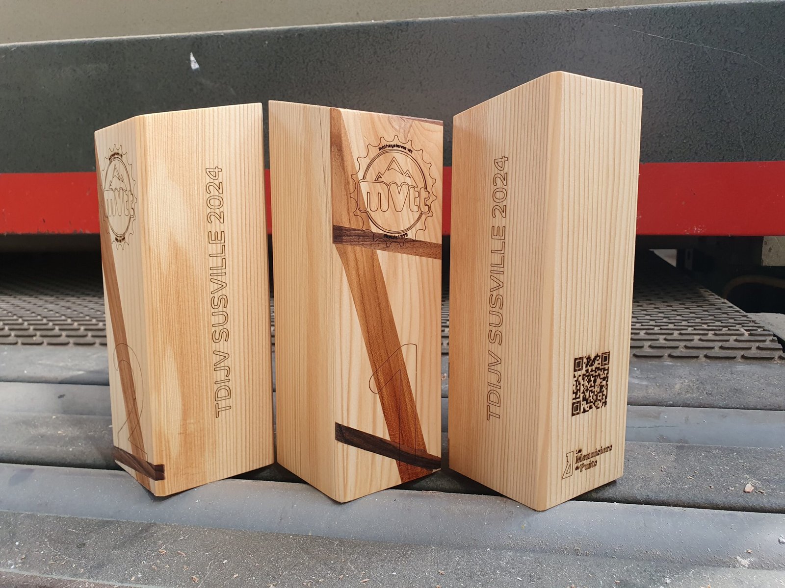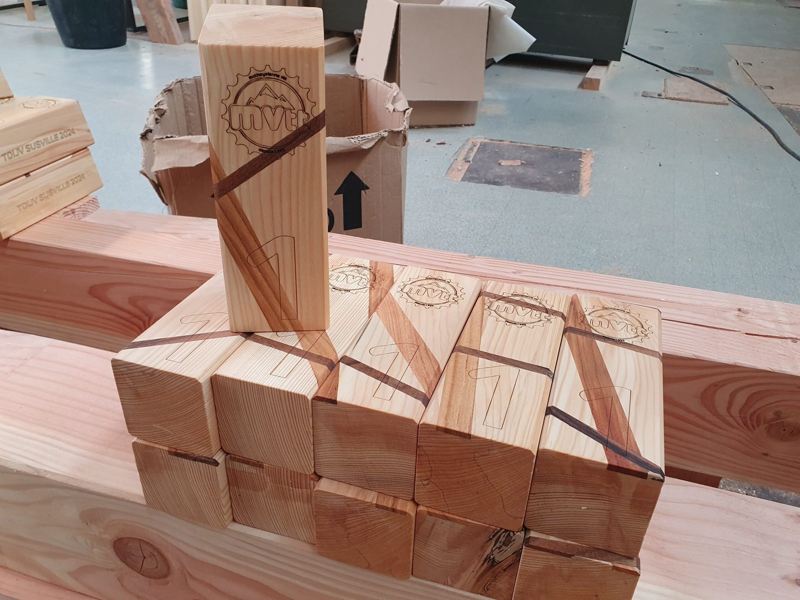 Réalisation de trophées pour la Matheysienne VTT 2024. Empiècement et gravures