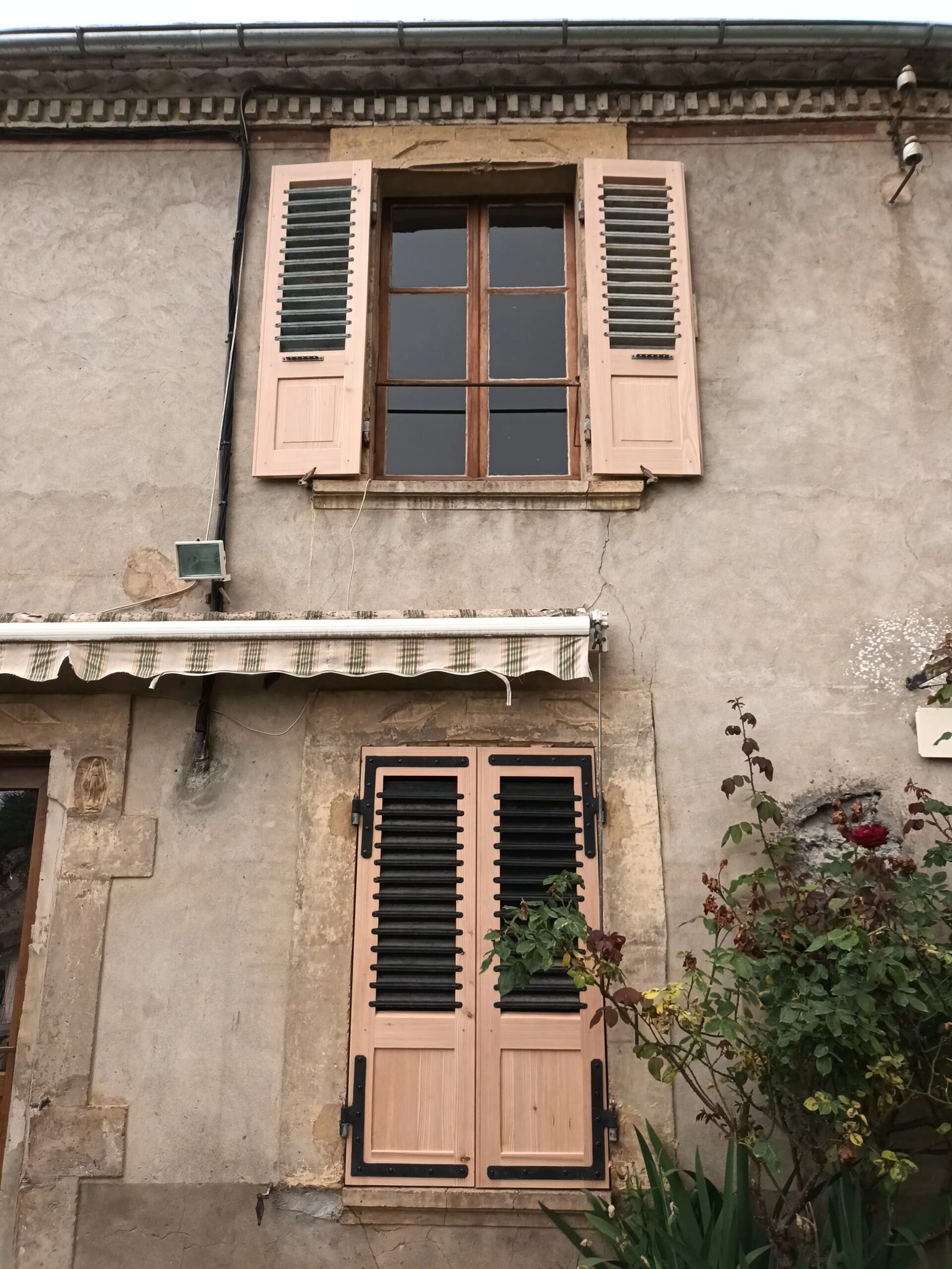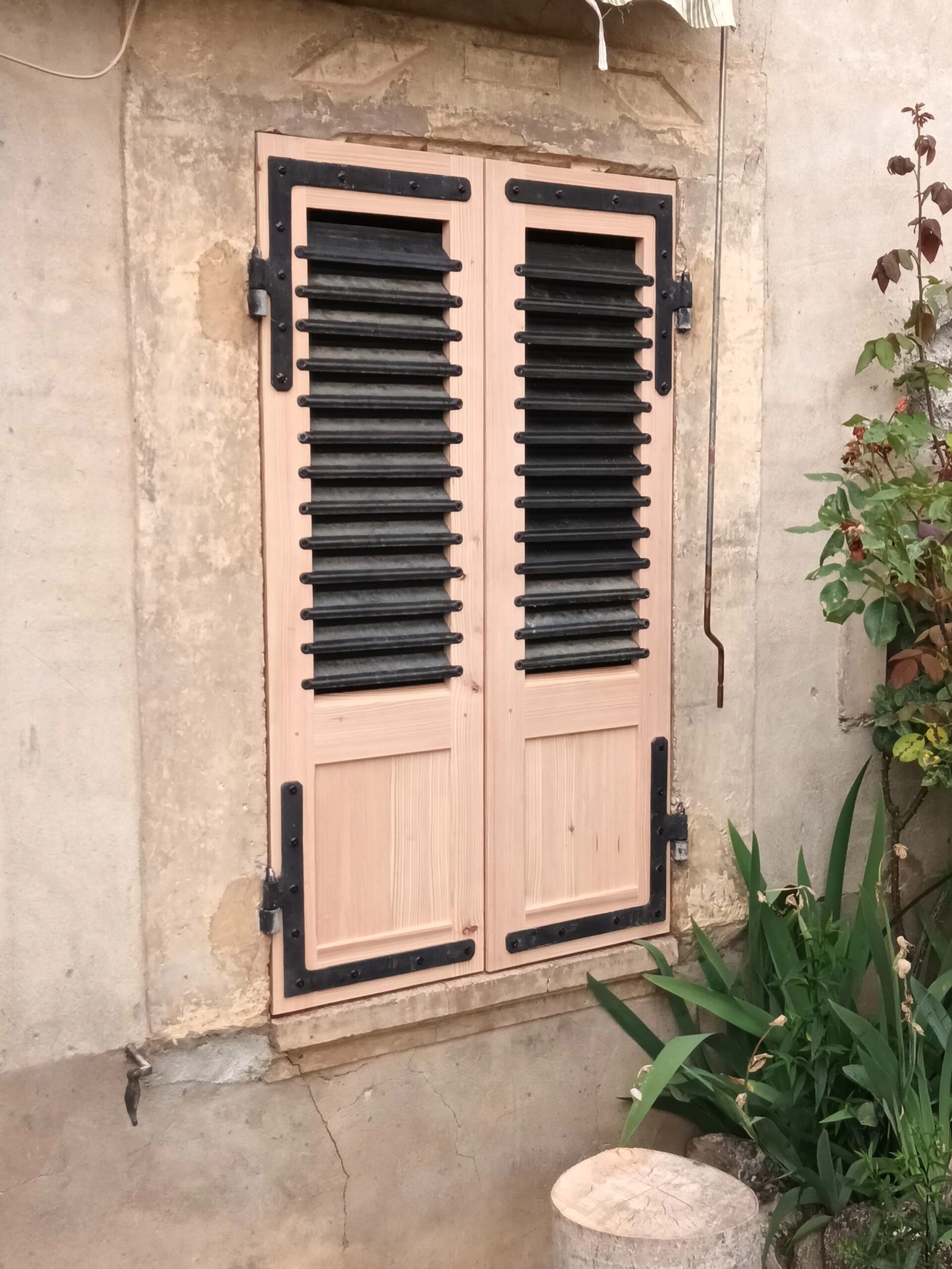 Fabrication et pose de volets persiennes en mélèze.